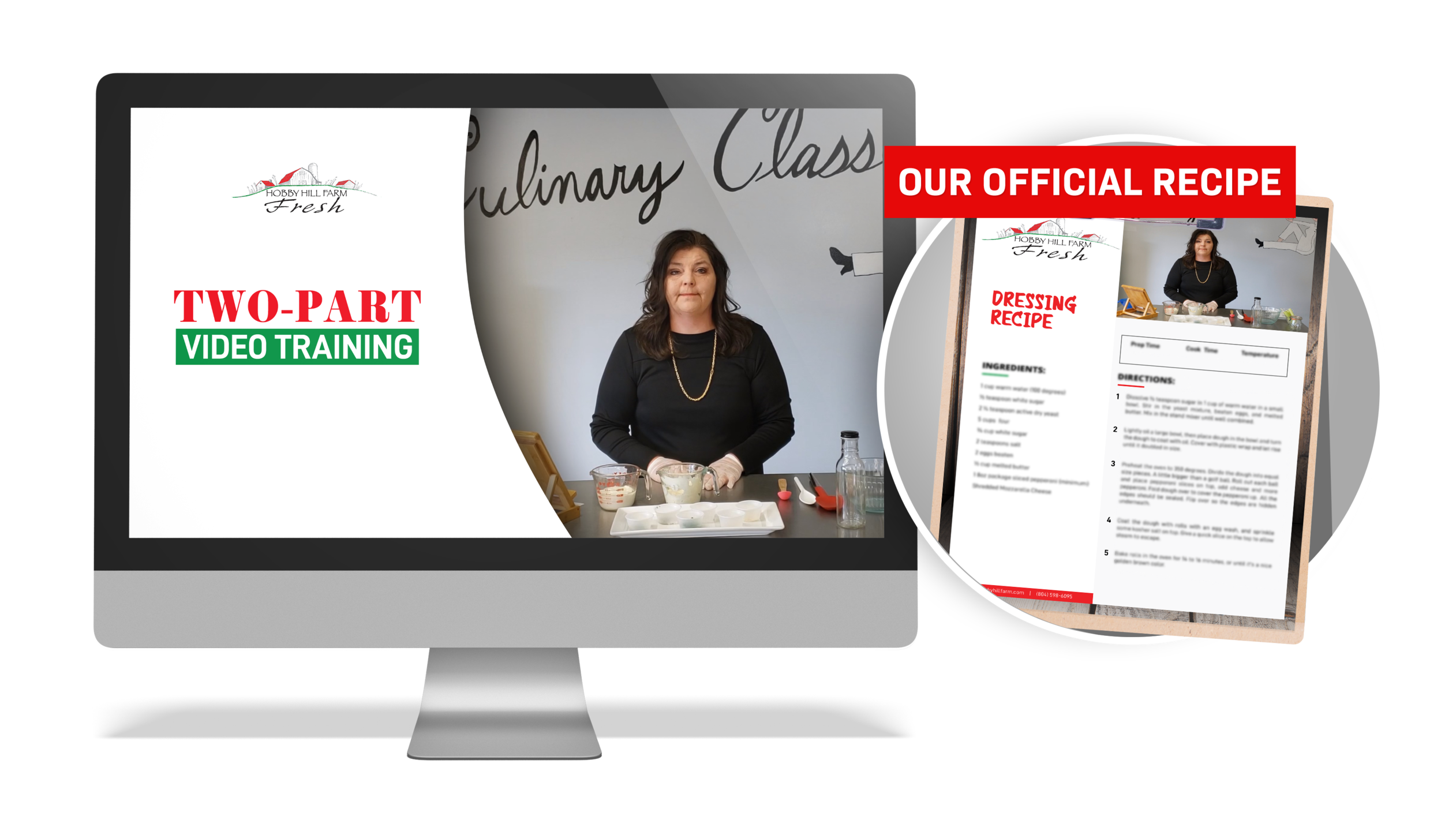 ✅ Our two-part online training, which will walk you through exactly how to create delicious buttermilk ranch dressing.